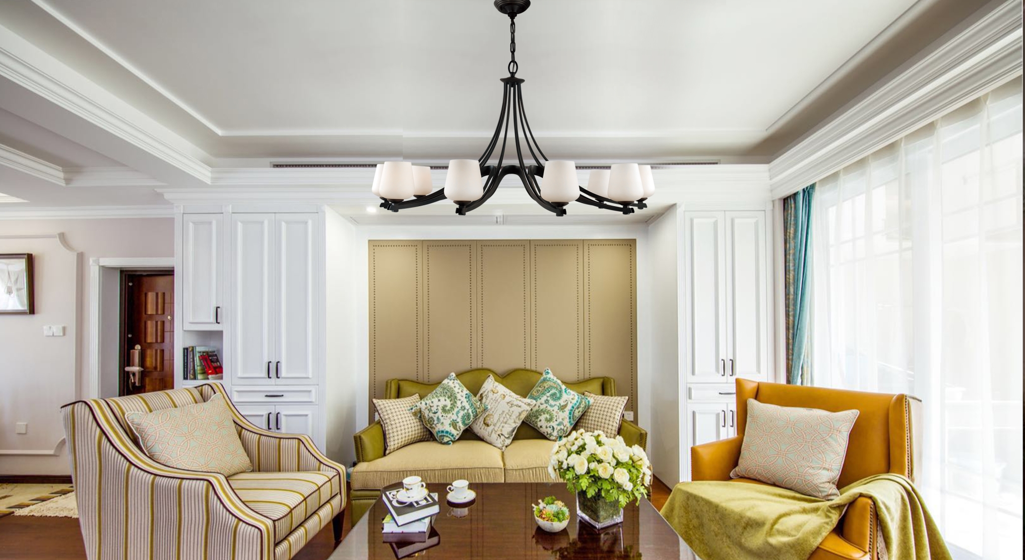 Nspired by Art Deco motifs with strong dark silhouettes providing a clean line and stunning focal point in a contemporary or transitional interior.